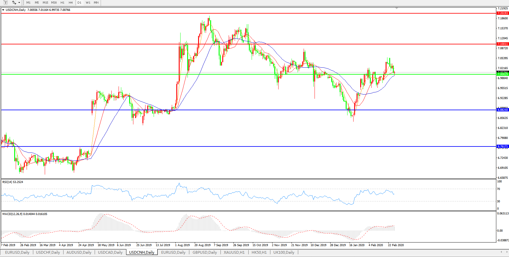 交易策略: 在7.0000之上,看涨,目标价位为7.1000,然后为7.2000。