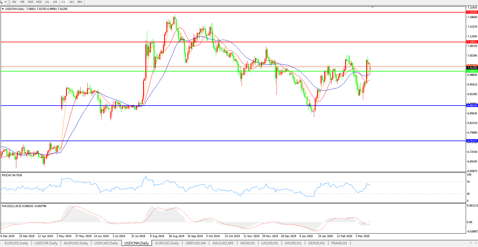 美元兑人民币USDCNH    日线图: