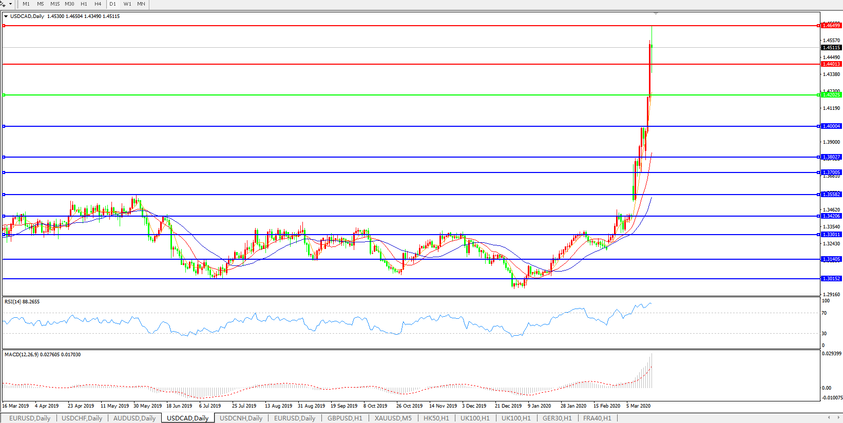 美元兑加元USDCAD    日线图: