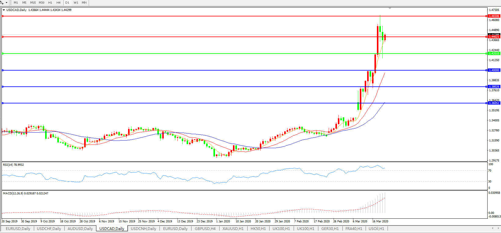 美元兑加元USDCAD 日线图: