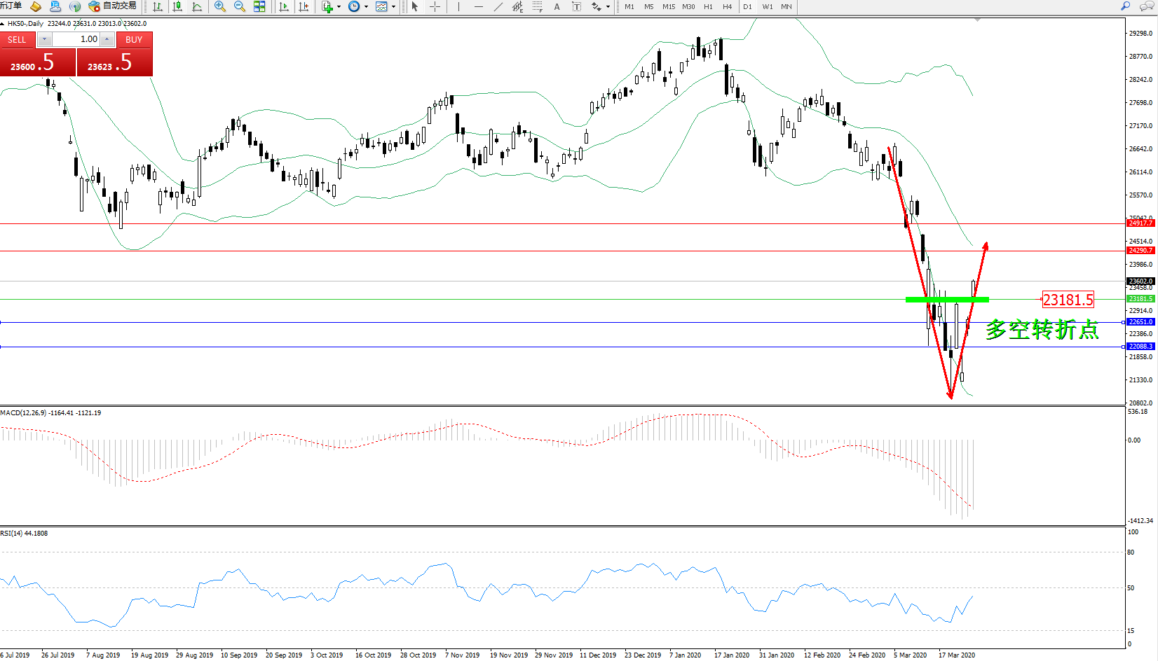 香港恒生指数3月25日(周三)收盘上涨863.70点,涨幅3.81%,报23527.19点;港股市场延续大反弹行情,尾盘主要股指涨幅进一步扩大,恒指国指一度大涨超4%。行业板块集体狂欢,重磅蓝筹股皆大涨。全球股市现超跌反弹行情,短期或将延续。主板成交量为1511.62亿港元,港股通大幅净流入68.15亿港元。亚太股市收盘全线大涨,美股股指期货涨幅扩大,道指期货涨幅扩大至2%,标普500指数期货涨1%,纳指期货涨0.7%。特朗普政府与参议院民主党就大规模刺激计划达成协议。参议院多数党(共和党)领袖麦康奈尔称,周三晚些时候对经济刺激法案进行投票。