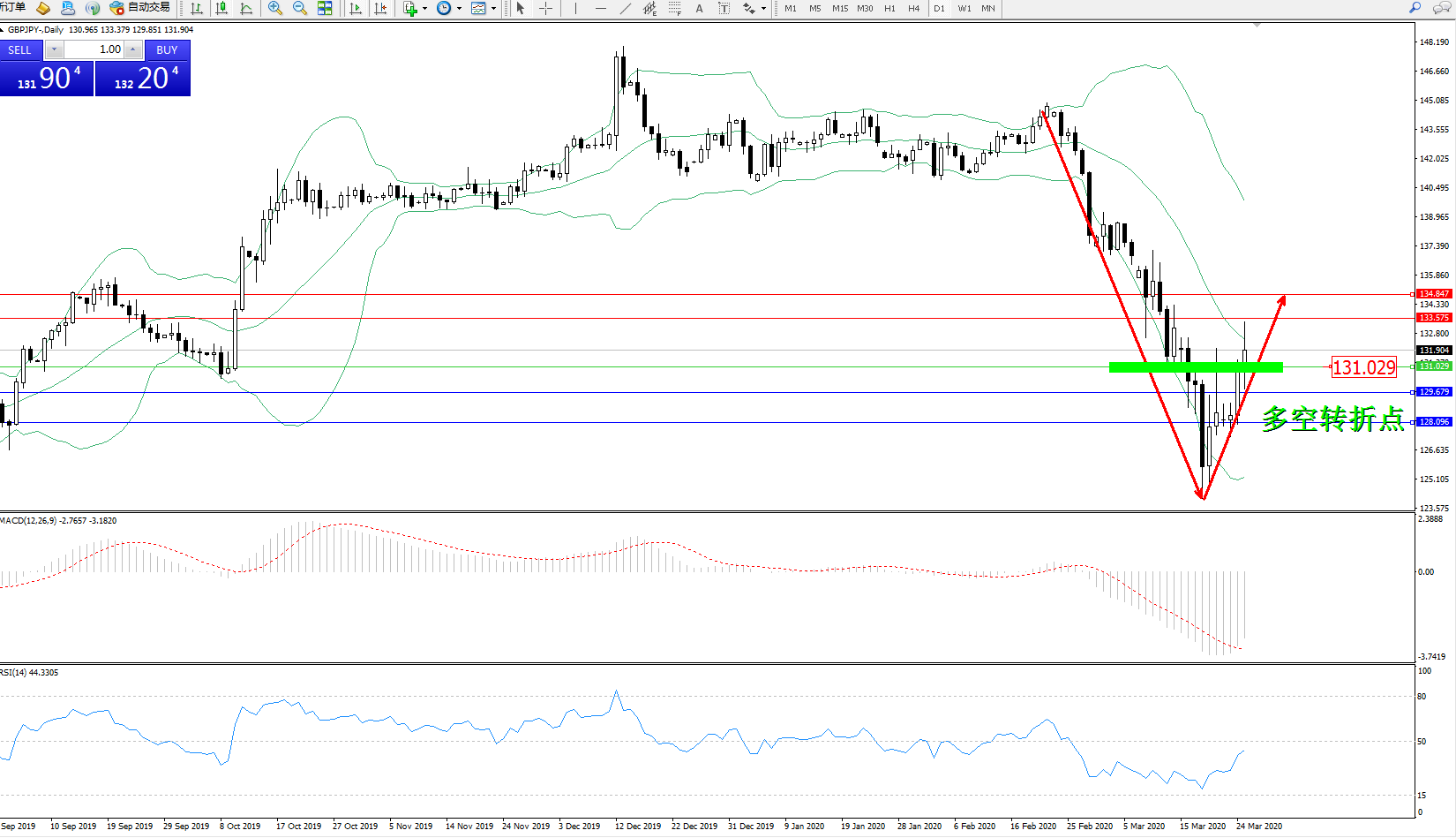 多空转折点:131.029