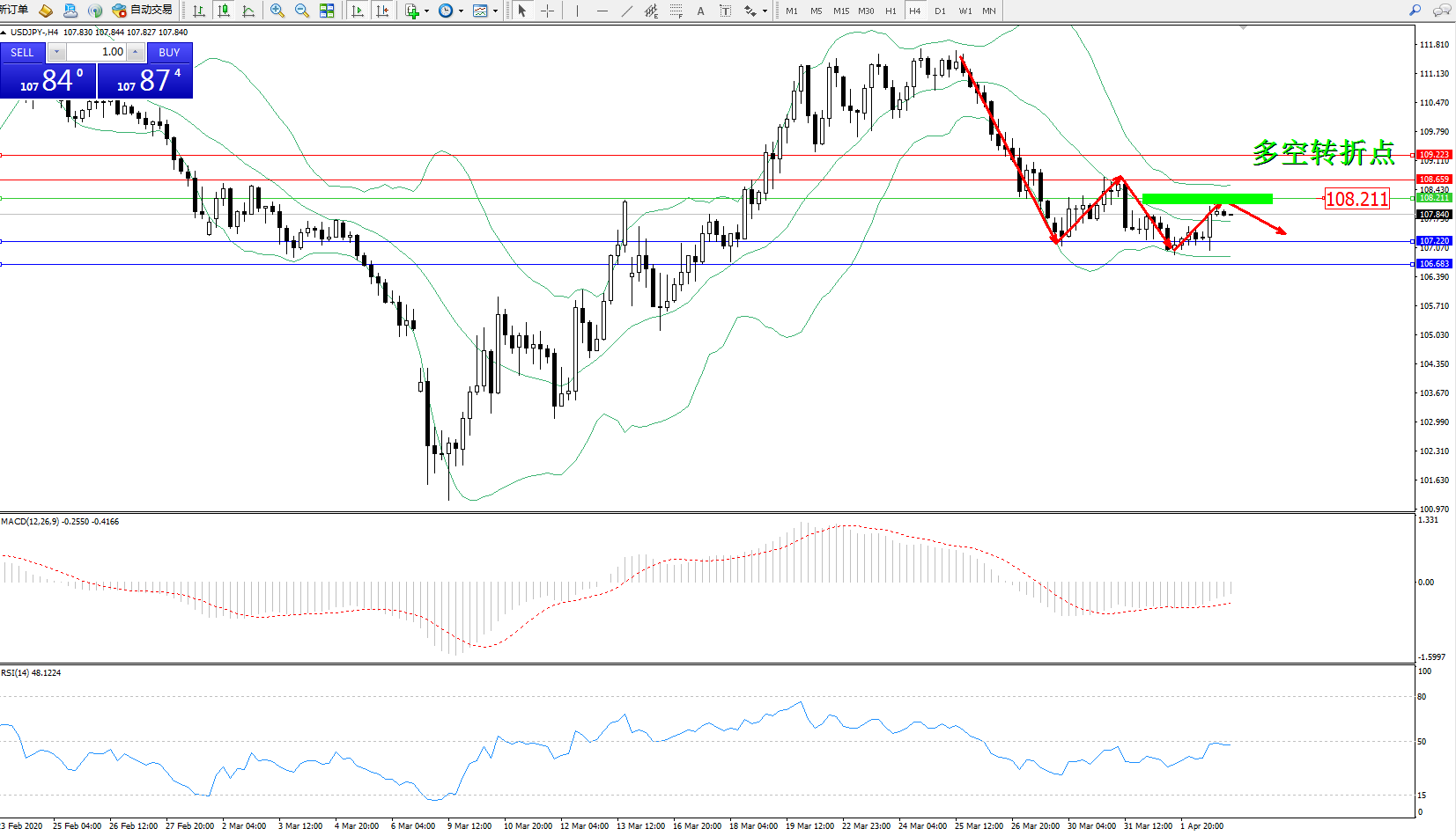 交易策略:108..211下方看跌,目标107.220106.683
