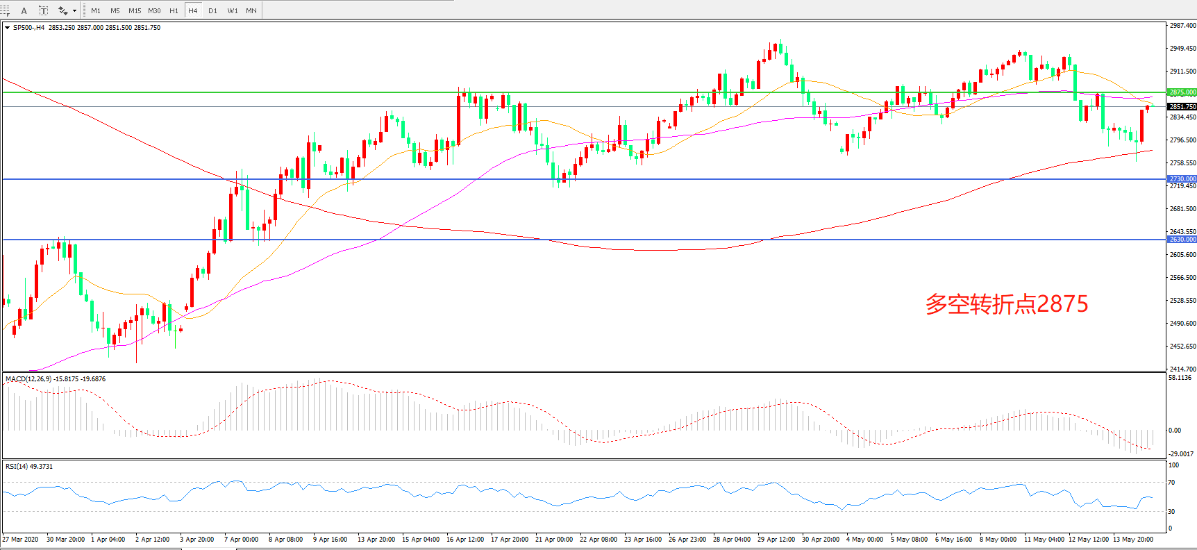 多空转折点:2875.00