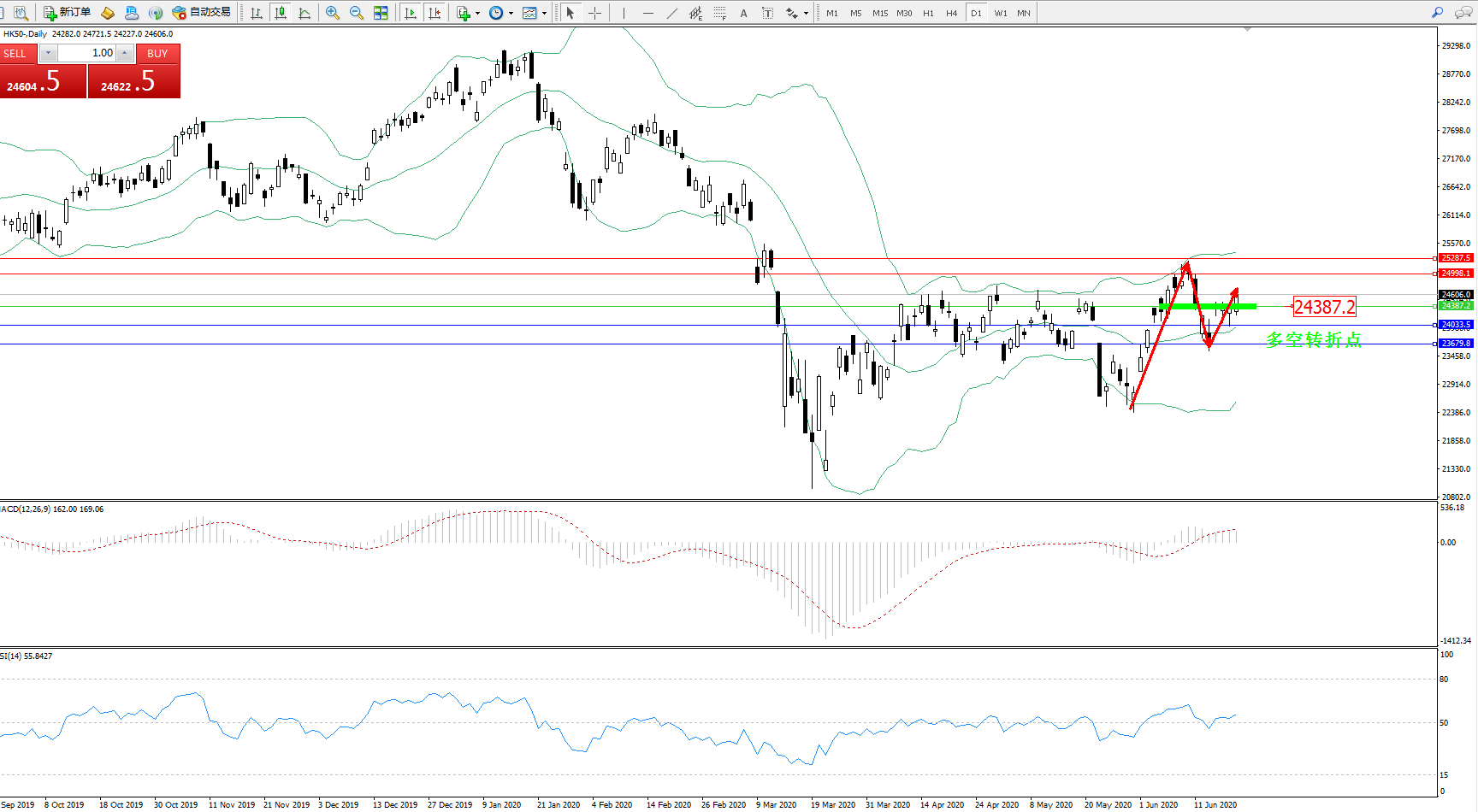 恒指HK50 ——日K线图显示: