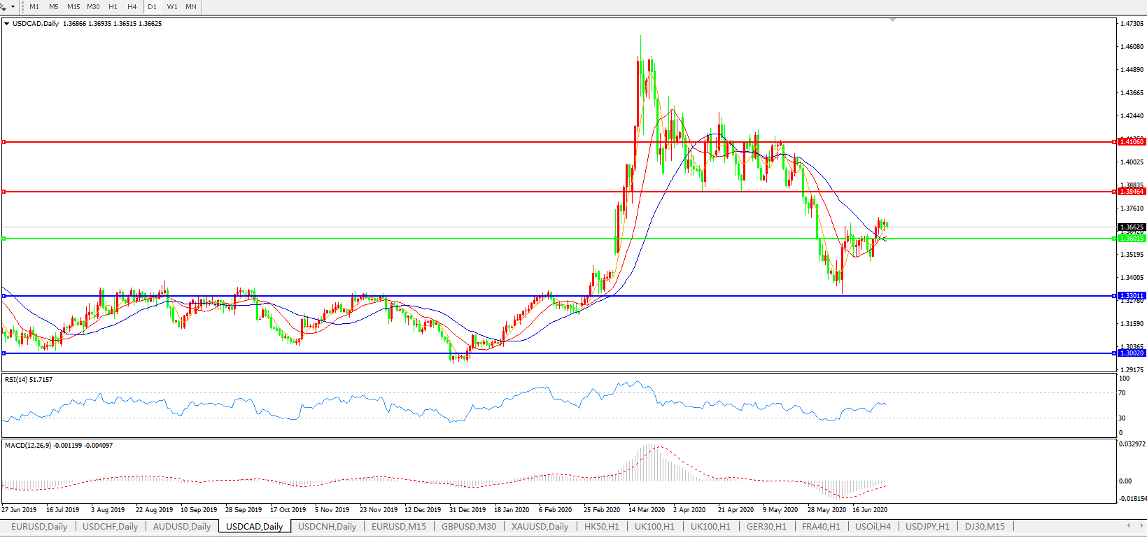 美元兑加元USDCAD    日线图: