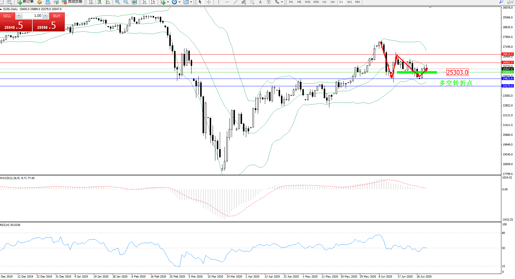 道琼斯指数71日(周三)收盘下跌77.90点,跌幅0.30%,报25734.97点。美国6ADP就业人数录得增加236.9万人,创下历史最大增幅,但不及预期的增加290万人,市场认为美联储会继续压低利率,刺激经济。美联储6月会议纪要显示,美联储官员认为应更明确表达利率路径前瞻指引,在购债方面也更明确,暗示青睐将未来行动与通胀挂钩,对是否控制收益率曲线存疑。纪要公布后,三大美股指短线走高,10年期美债收益率上扬。由于担心第二波病毒感染,且全球央行加大刺激措施并保持低利率以缓解大流行对经济的打击,上个季度金价飙升超过13%