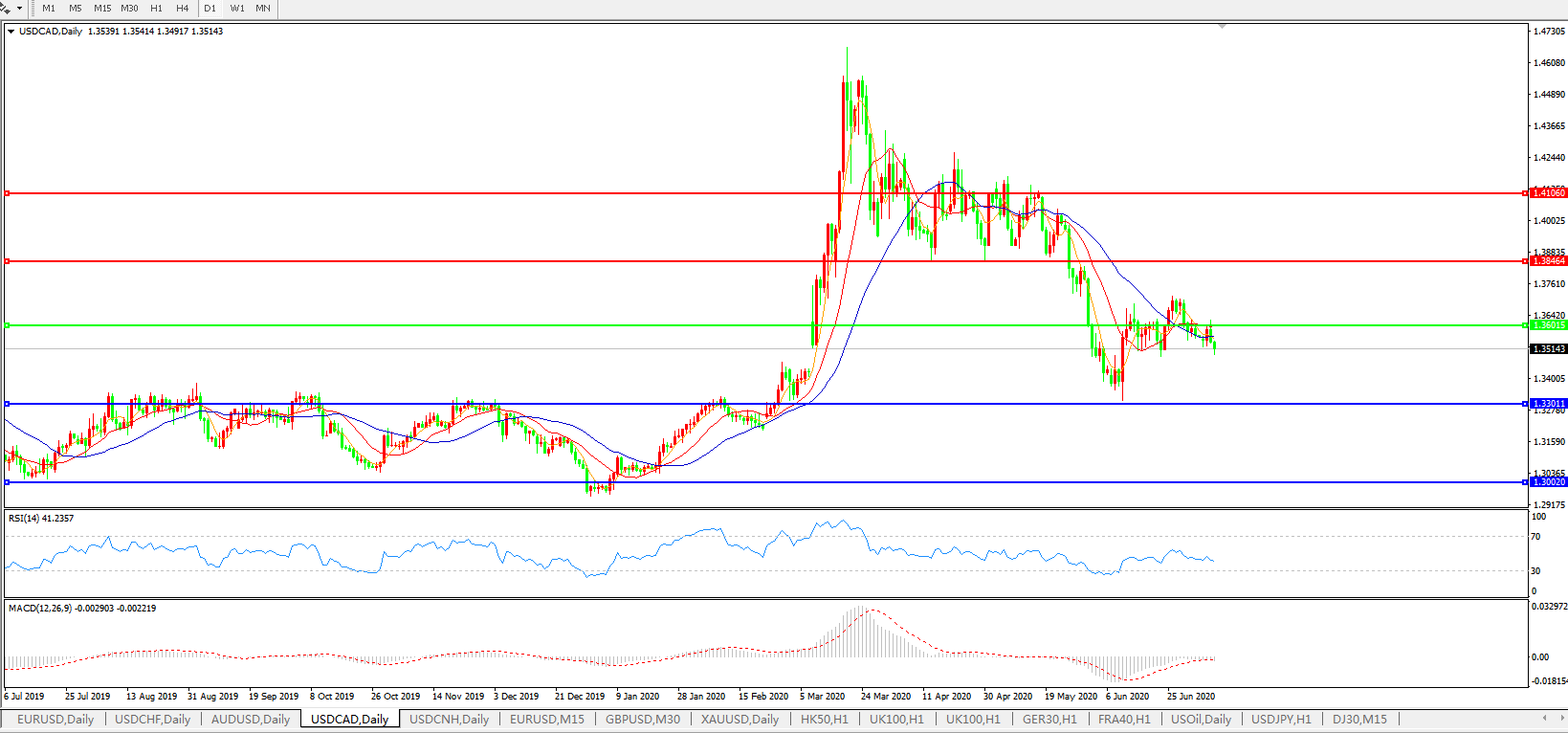 美元兑加元USDCAD 日线图: