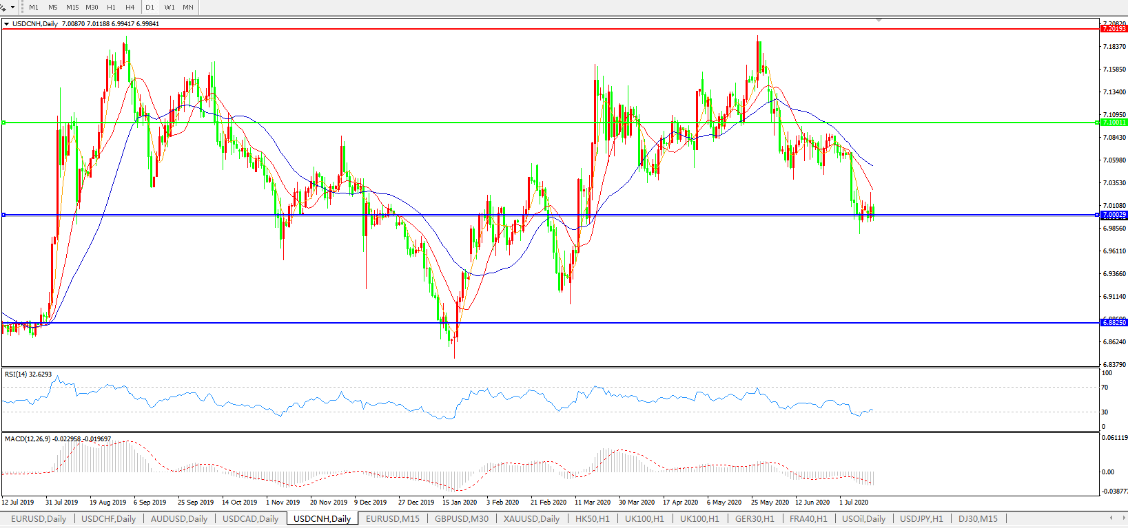 交易策略: 在7.1000之下,看跌,目标价位为7.0000,然后为6.8820。
