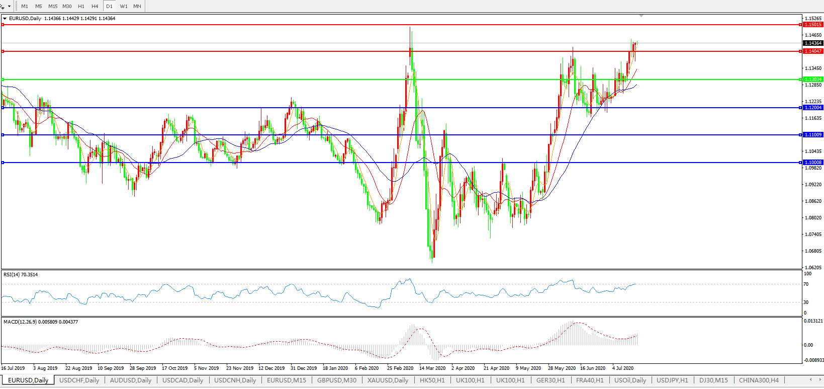 欧元兑美元EURUSD 日线图: