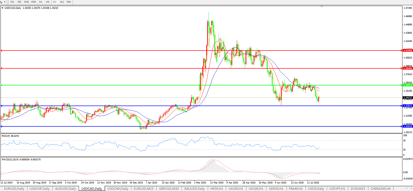 美元兑加元USDCAD 日线图: