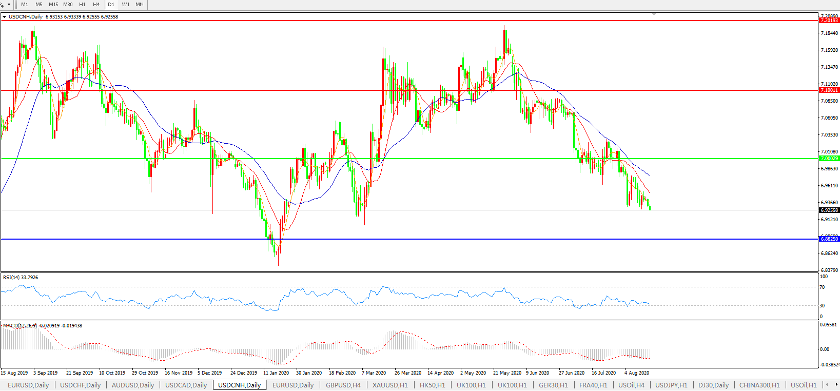 美元兑人民币USDCNH 日线图: