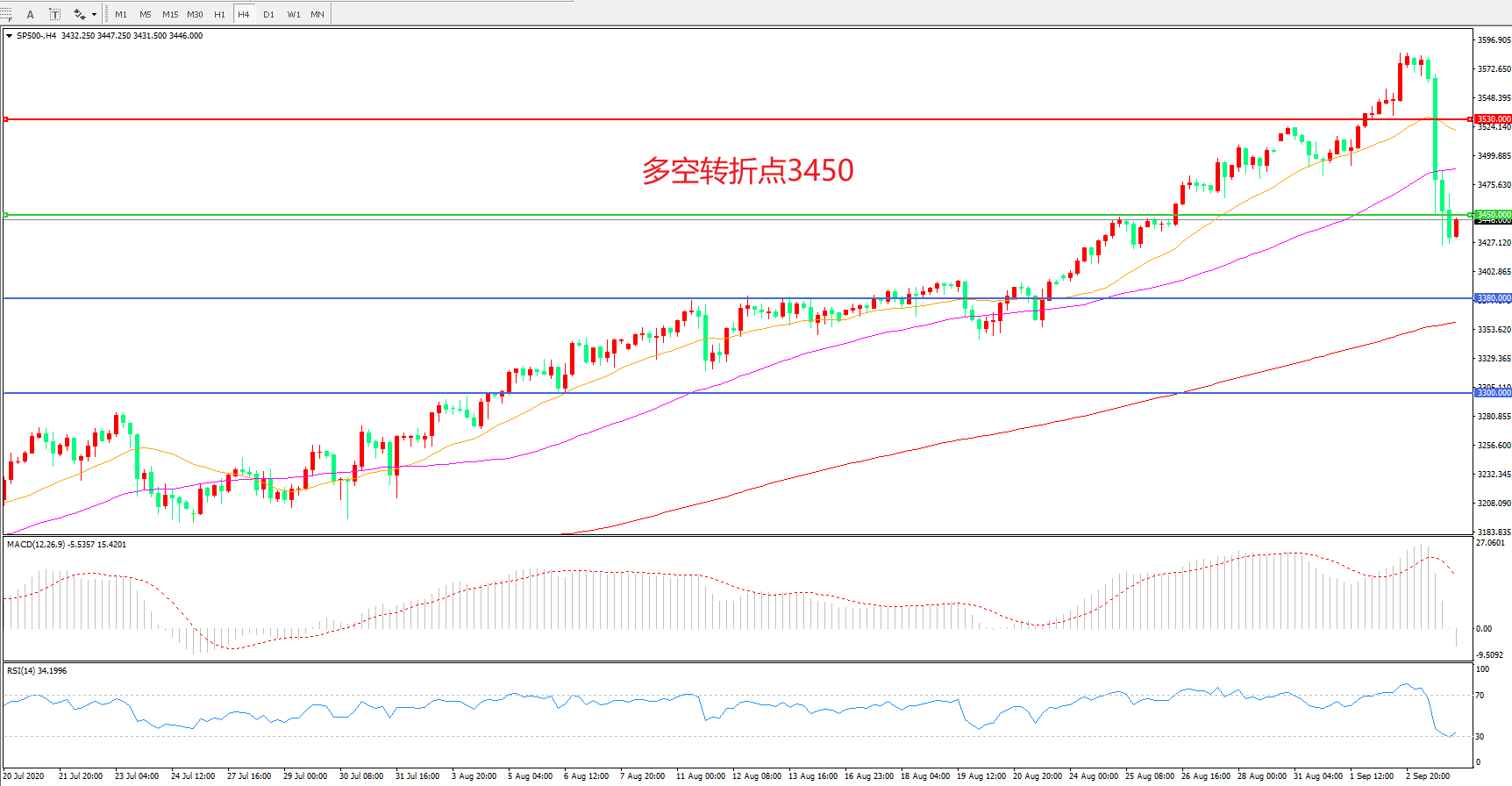 交易策略:在3450.00之下看跌,目标3380.00         3300.00