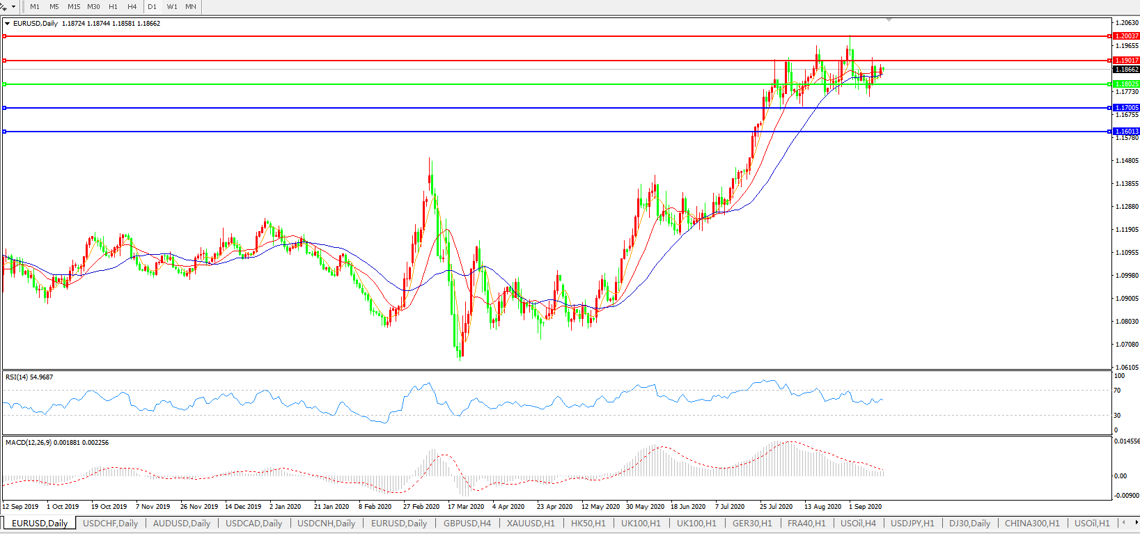 备选策略:1.1800上方看涨,目标1.1900、1.2000