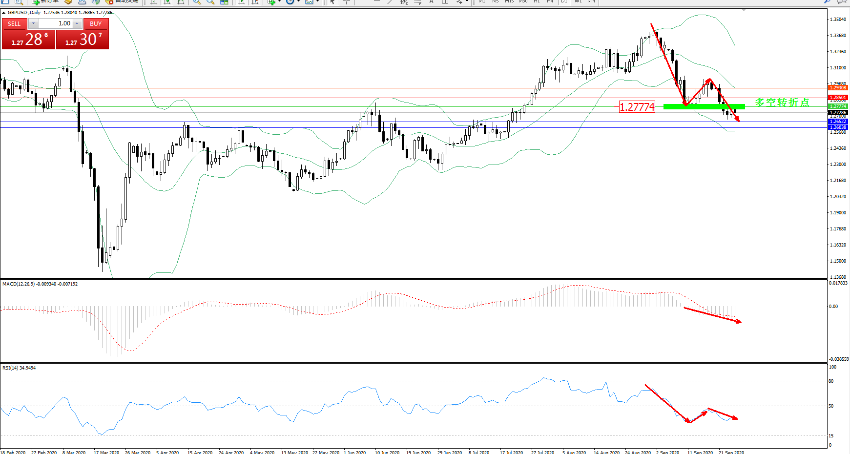 交易策略:1.27774下方看跌,目标1.26522、1.26038