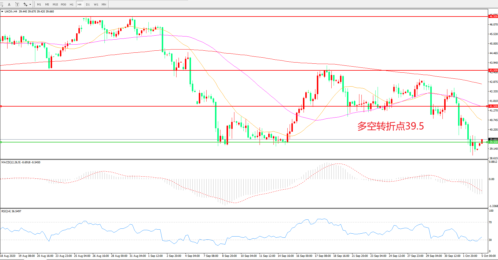 上周,特朗普新冠确诊的消息使得市场对疫情控制的悲观情绪增加,油价跌幅迅速扩大,布伦特原油一度暴跌5%,最终收报39.14美元/桶。目前在原油市场供需两端中,需求端预期走弱,中短期的消费淡季以及中长期疫情恶化形势下需求恢复预期持续放缓,在悲观的市场氛围中,原油仍然存在进一步下破的风险