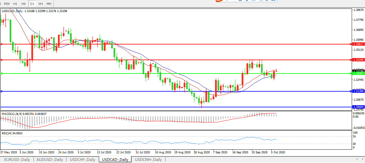 美元兑加元USDCAD 日线图: