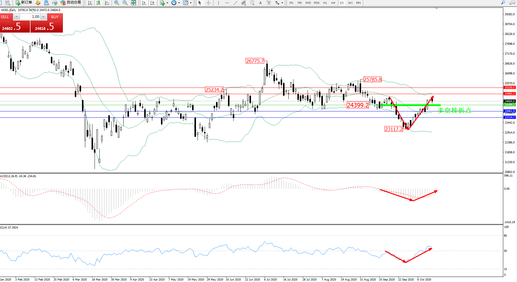 恒指HK50 ——日K线图显示: