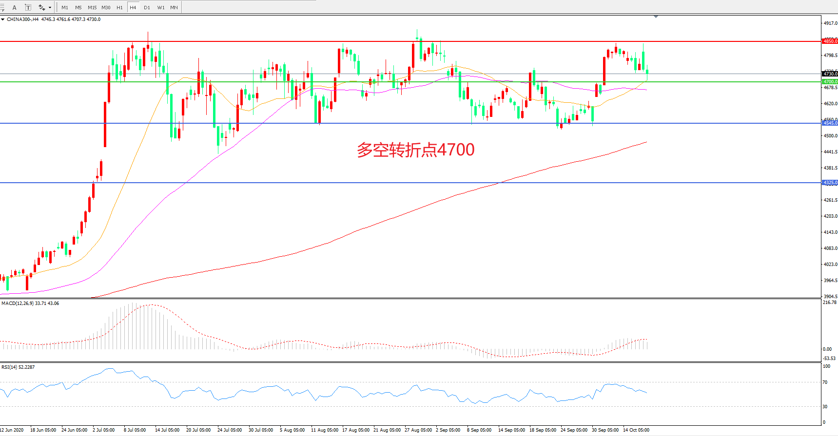 周一(10月19日),A股在经过数日震荡后波动开始加大,沪深300高开上行后突然跳水,最终收报4730点,两市合计成交7391亿元,北向资金净流出32.43亿元。这里的跳水实际上并没有实际的诱因,更多的还是短期的资金出逃。