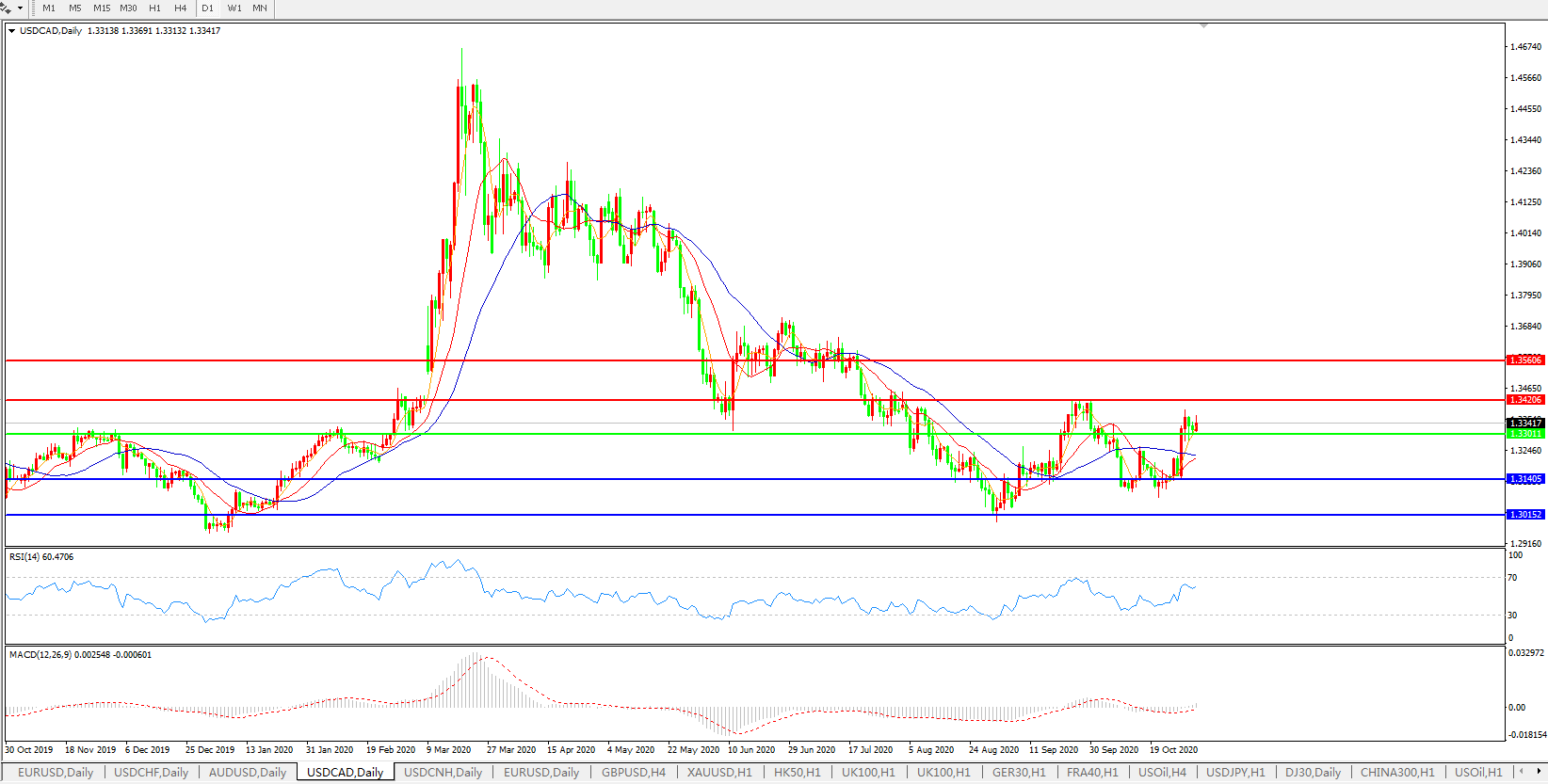 美元兑加元USDCAD    日线图: