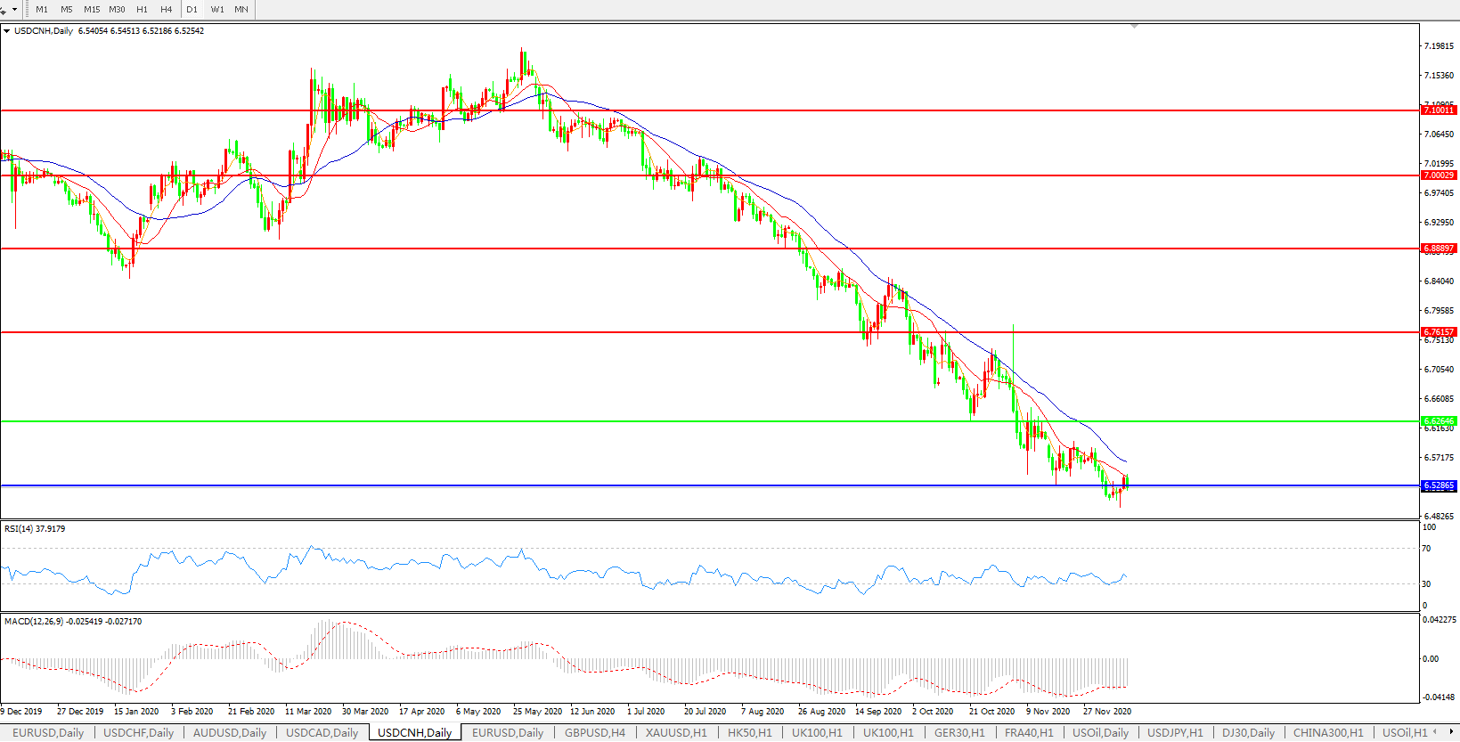 美元兑人民币USDCNH 日线图: