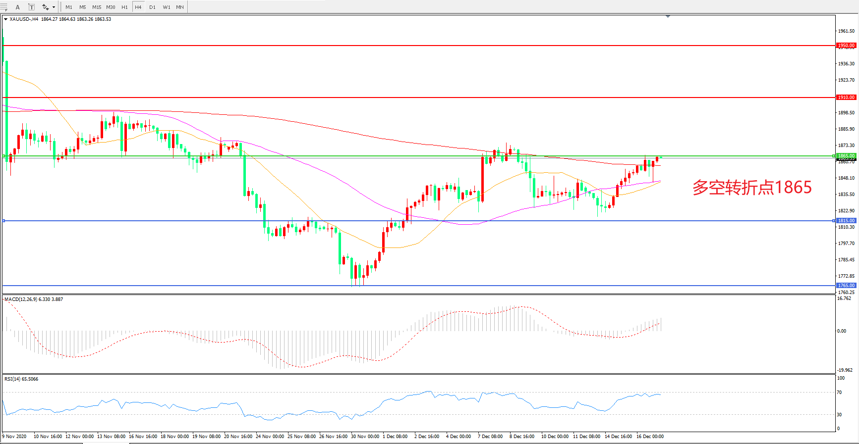 交易策略:在1865.00之上看涨,目标1910.00   1950.00