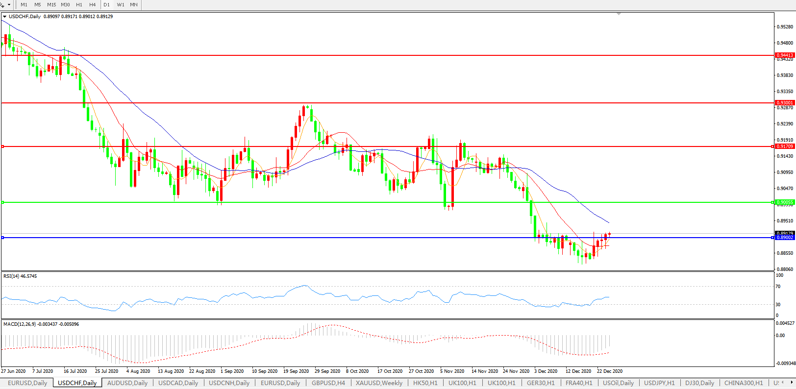 美元兑瑞郎USDCHF    日线图: