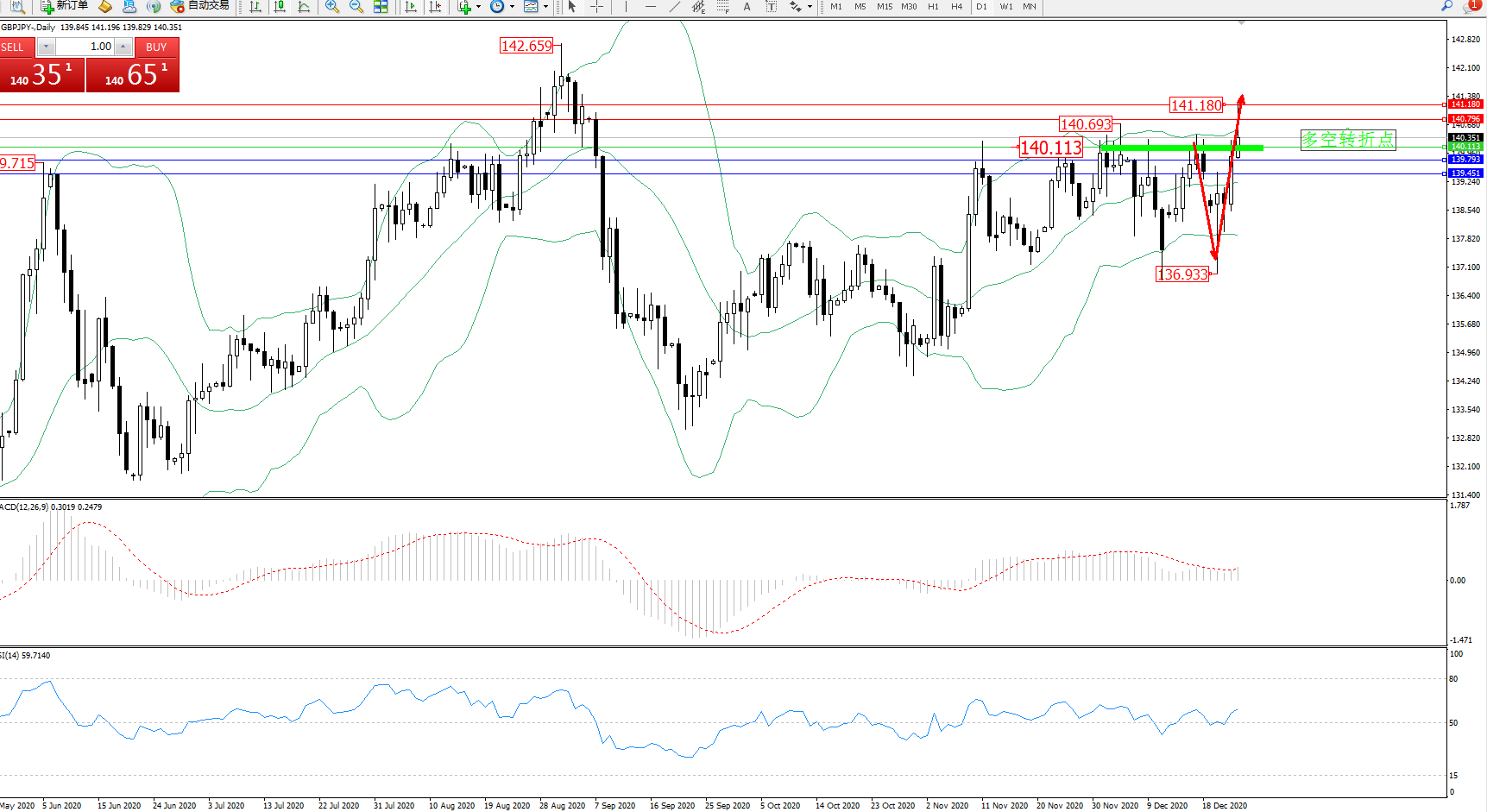 交易策略:140.113上方看涨,目标140.796、141.180