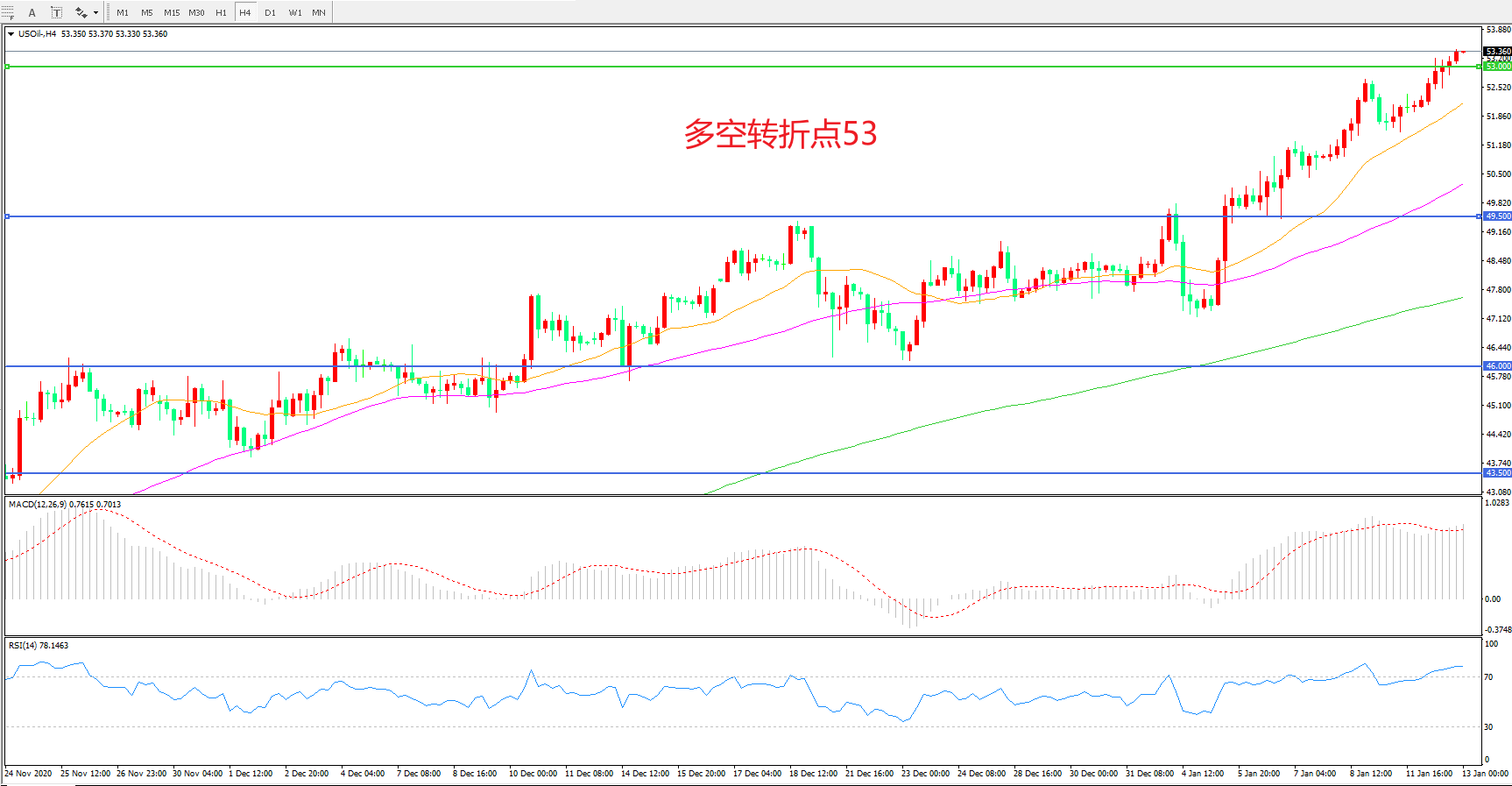 美国原油USOIL     4小时图