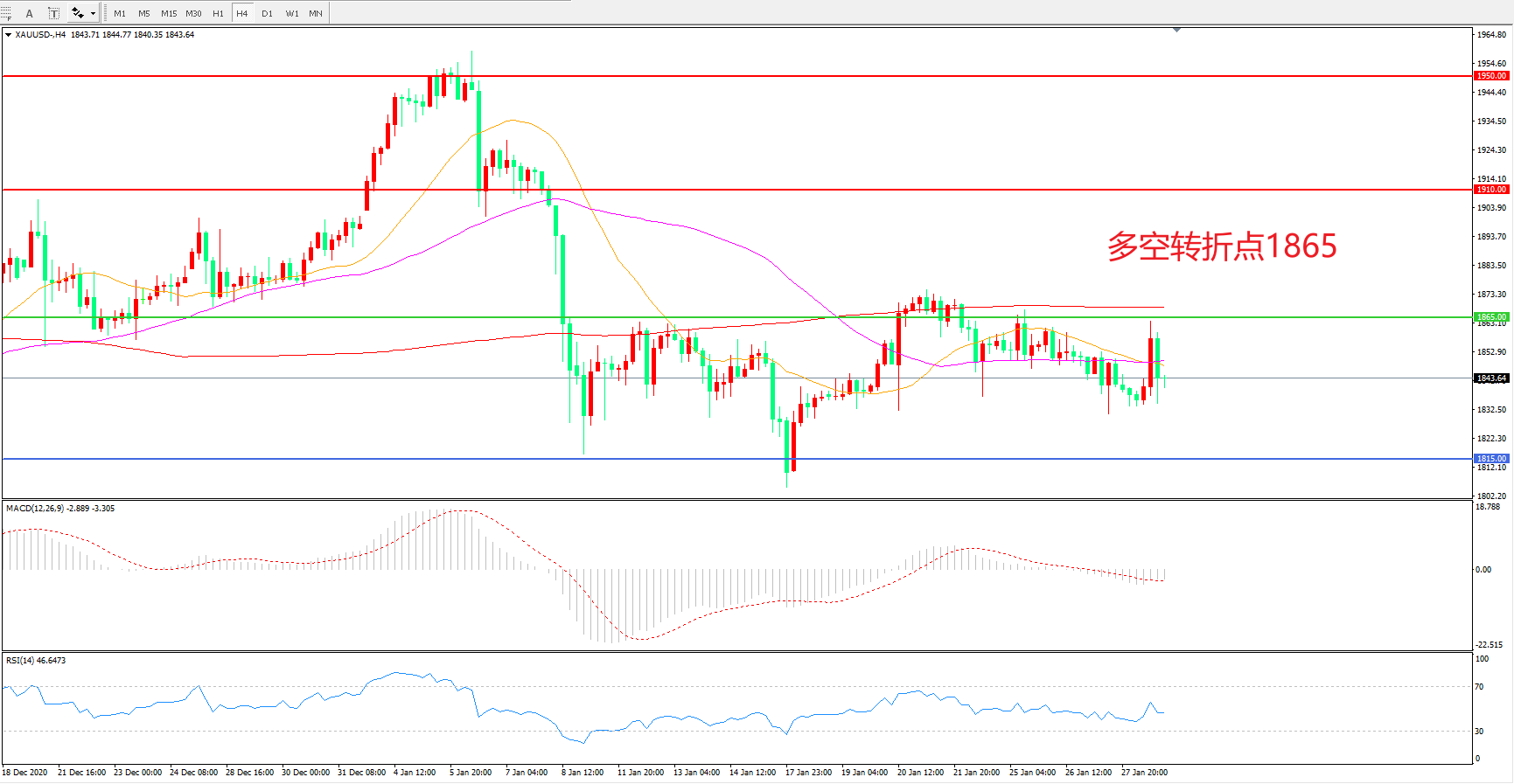 交易策略:在1865.00之下看跌,目标1815.00    1765.00