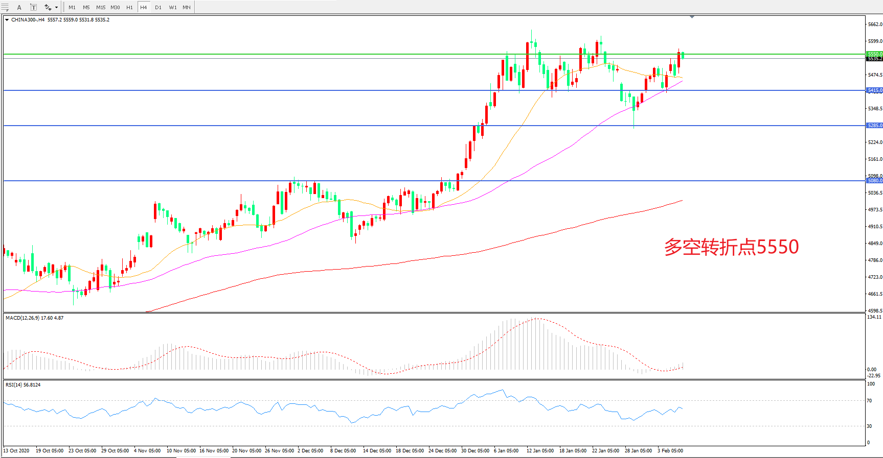 多空转折点:5550.00
