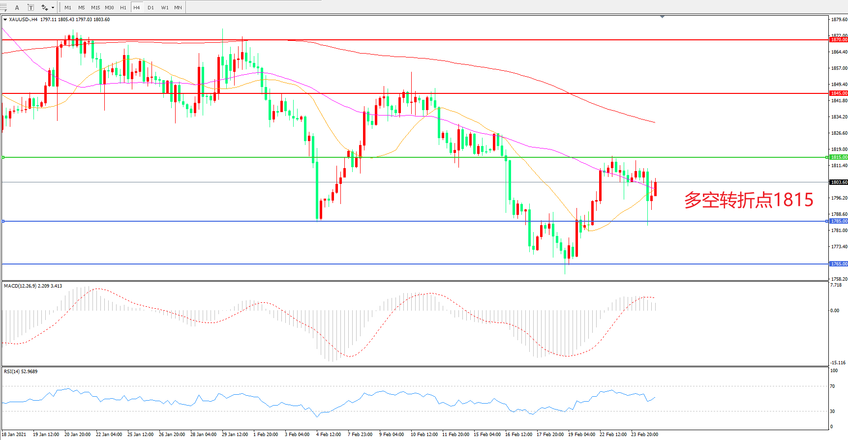 备选策略:在1815.00之上看涨,目标1845.00    1870.00