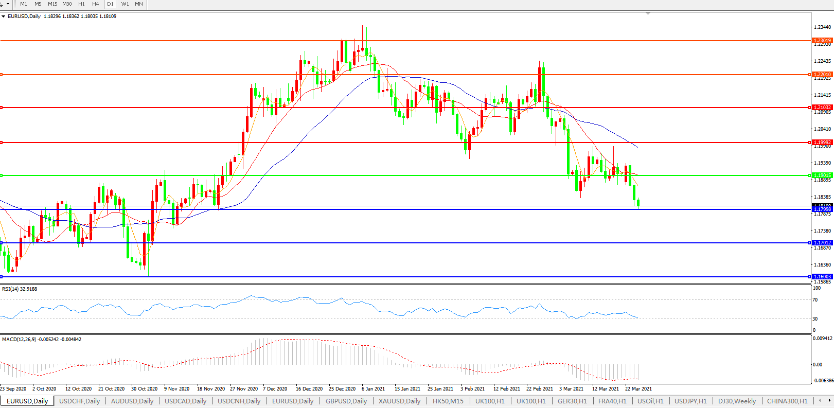 欧元兑美元EURUSD   日线图: