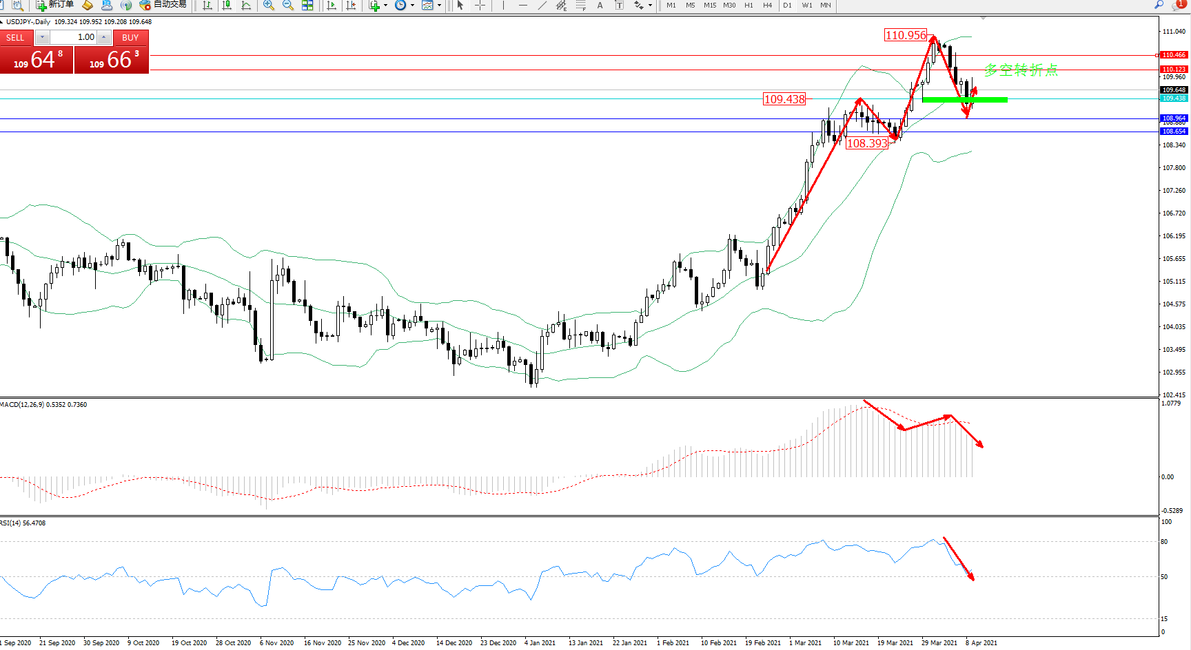多空转折点:109.438