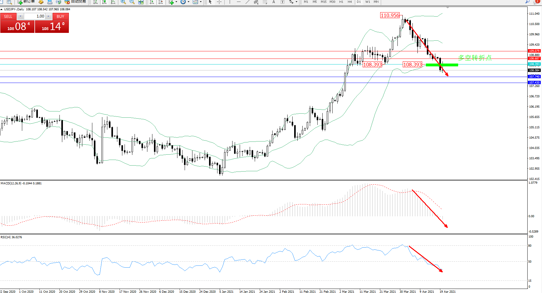 多空转折点:108.393