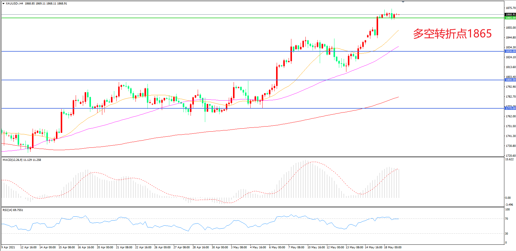 多空转折点:1865.00