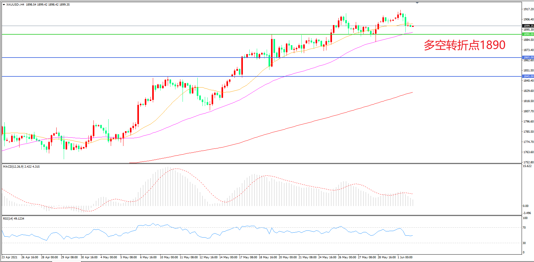 交易策略:在1890.00之上看涨,目标1910.00    1935.00