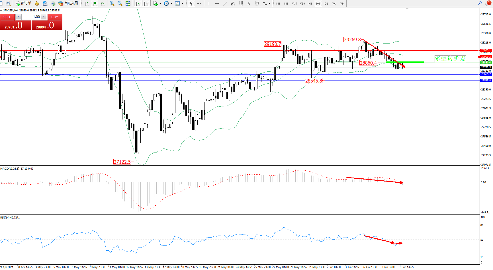 交易策略:28860下方看跌,目标28655、28545