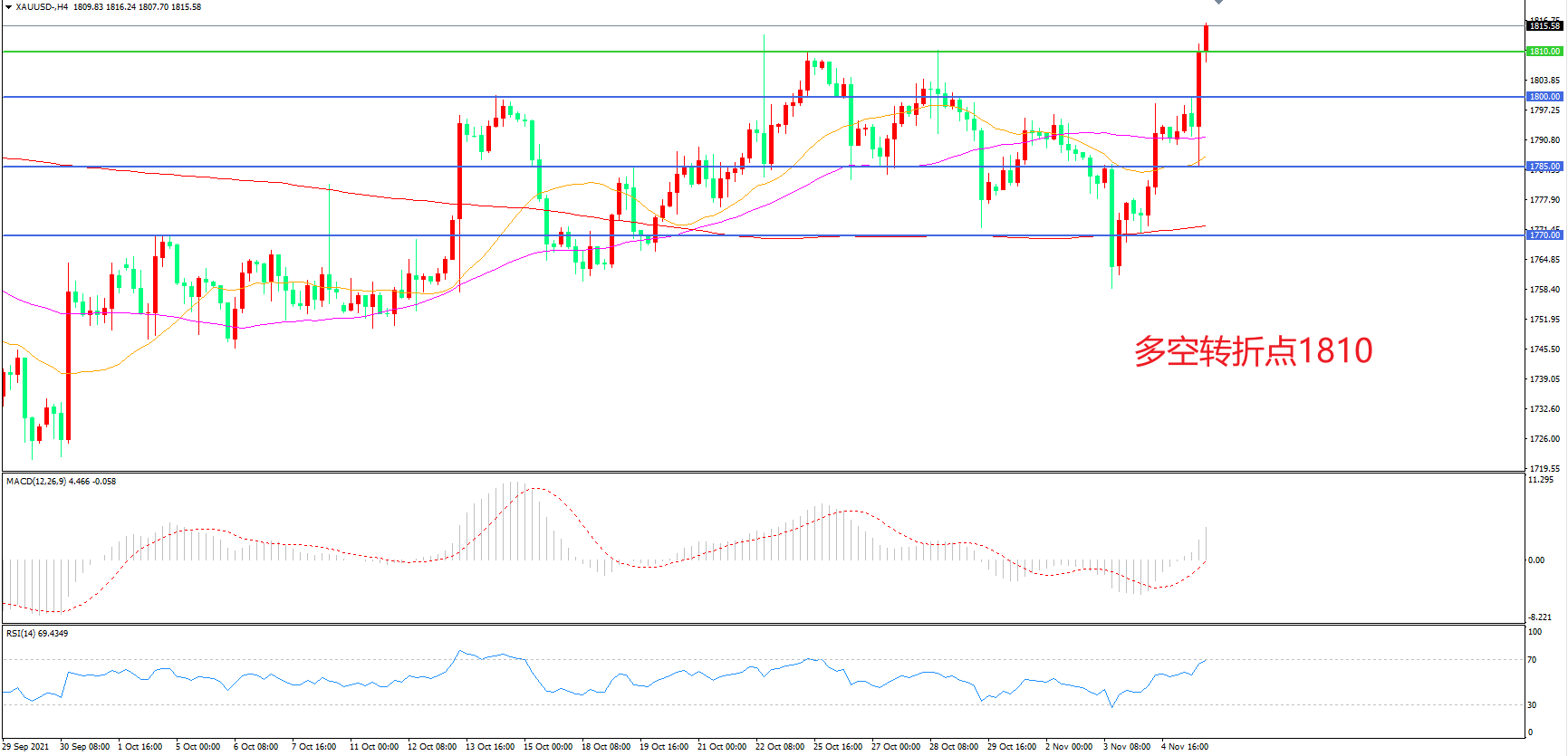 交易策略:在1810.00之上看涨,目标1830.00       1845.00