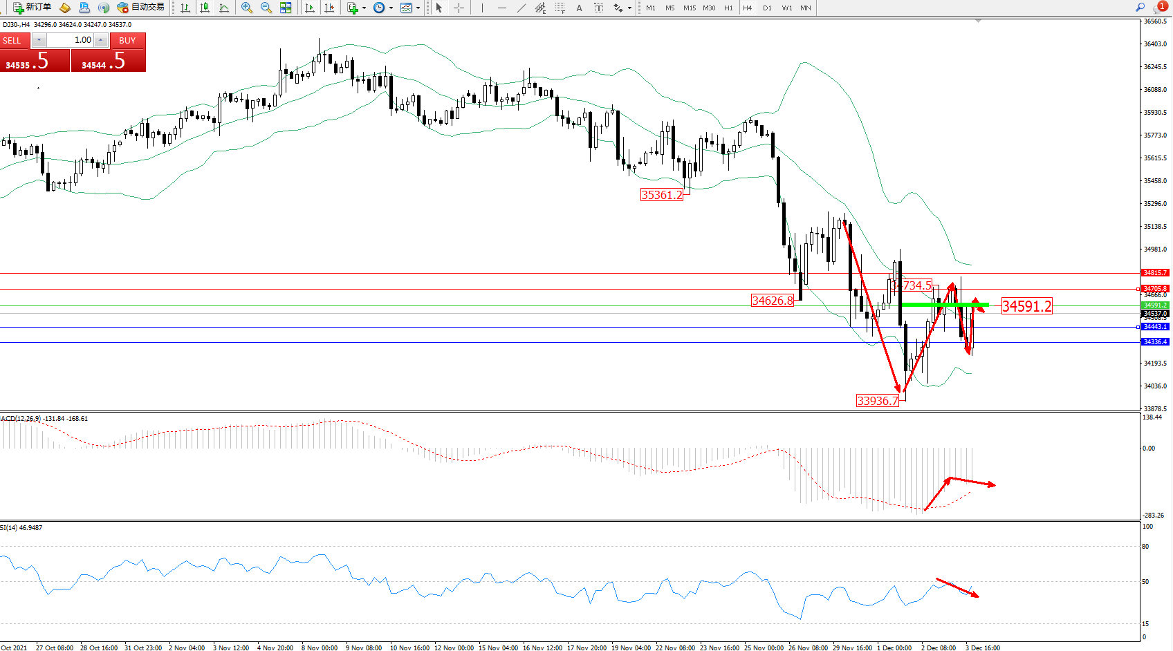 道琼斯指数12月3日(周五)收盘下跌60.17点,跌幅0.17%,报34579.62点;大型科技股拖累美国股市周五下挫,全周市场波动剧烈。过去几天,交易员消化了很多信息,包括美联储主席鲍威尔的鹰派讲话,omicron给全球经济重启带来的不确定性。美国11月非农就业报告喜忧参半,加剧了市场的波动性,一些经济学家和分析师认为该报告不一定会改变货币政策趋势,美联储仍可能会加快减码。