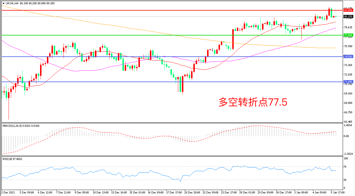 交易策略:在77.50之上看涨,目标81.00                84.00
