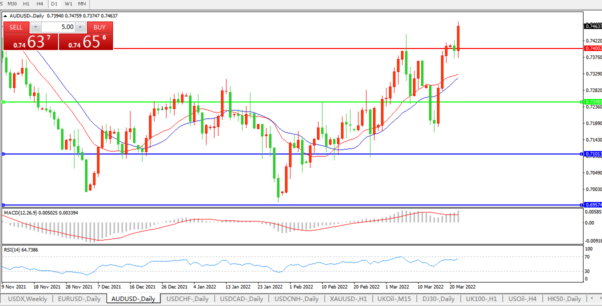 压制位:0.7400    0.7550
