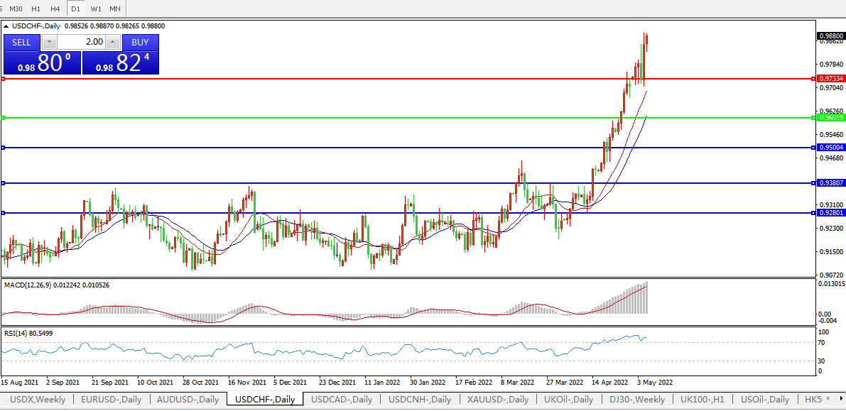 美元指数连涨五周,美元兑瑞郎继续冲高