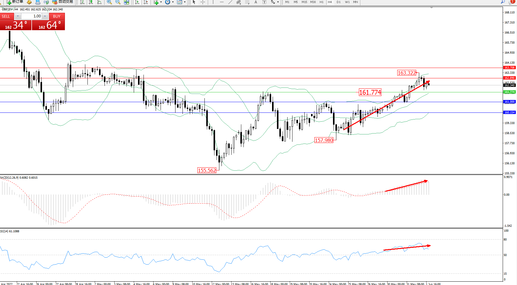 交易策略:161.774上方看涨,目标162.890、163.708