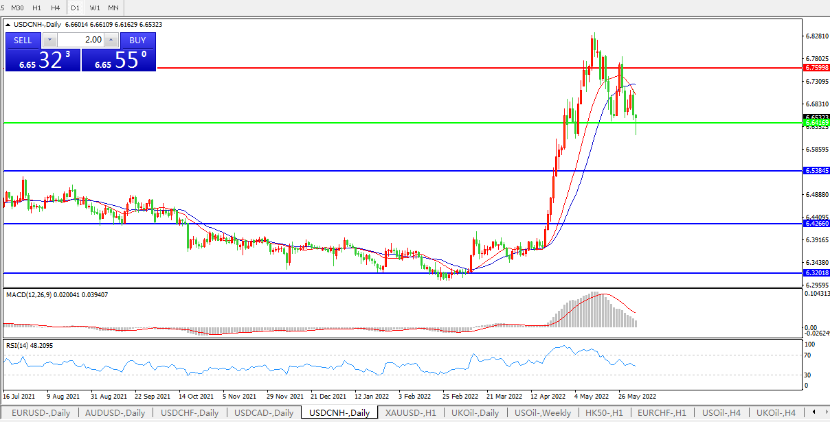 备选策略:在6.6416之上,看涨,目标价位为6.7600,然后为6.8870。