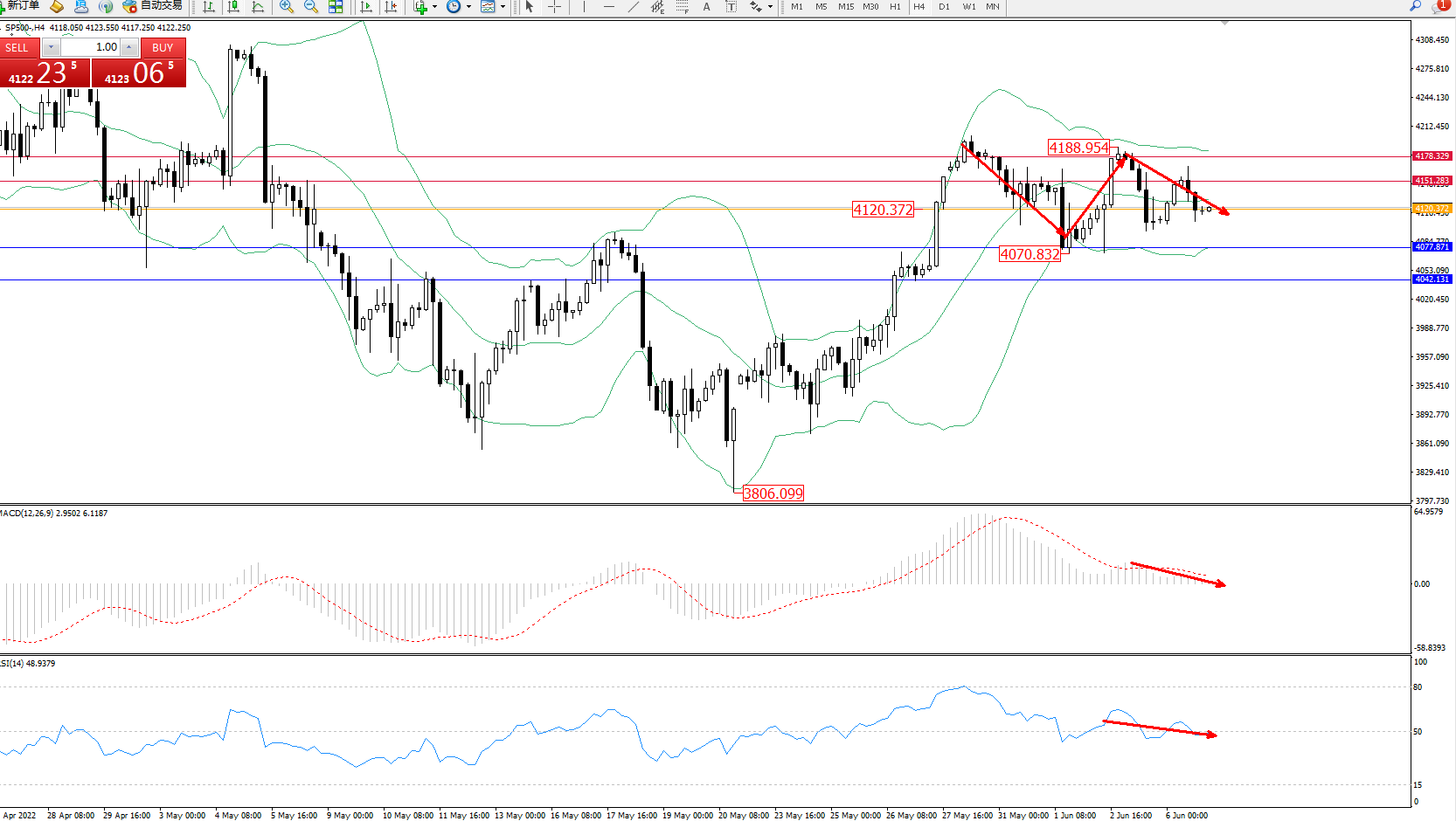 标普SP500——4小时K线图显示: