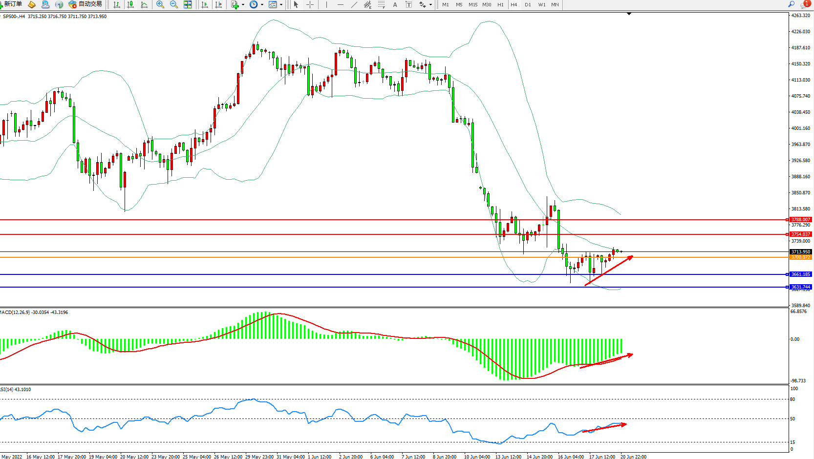 标普SP500——4小时K线图显示: