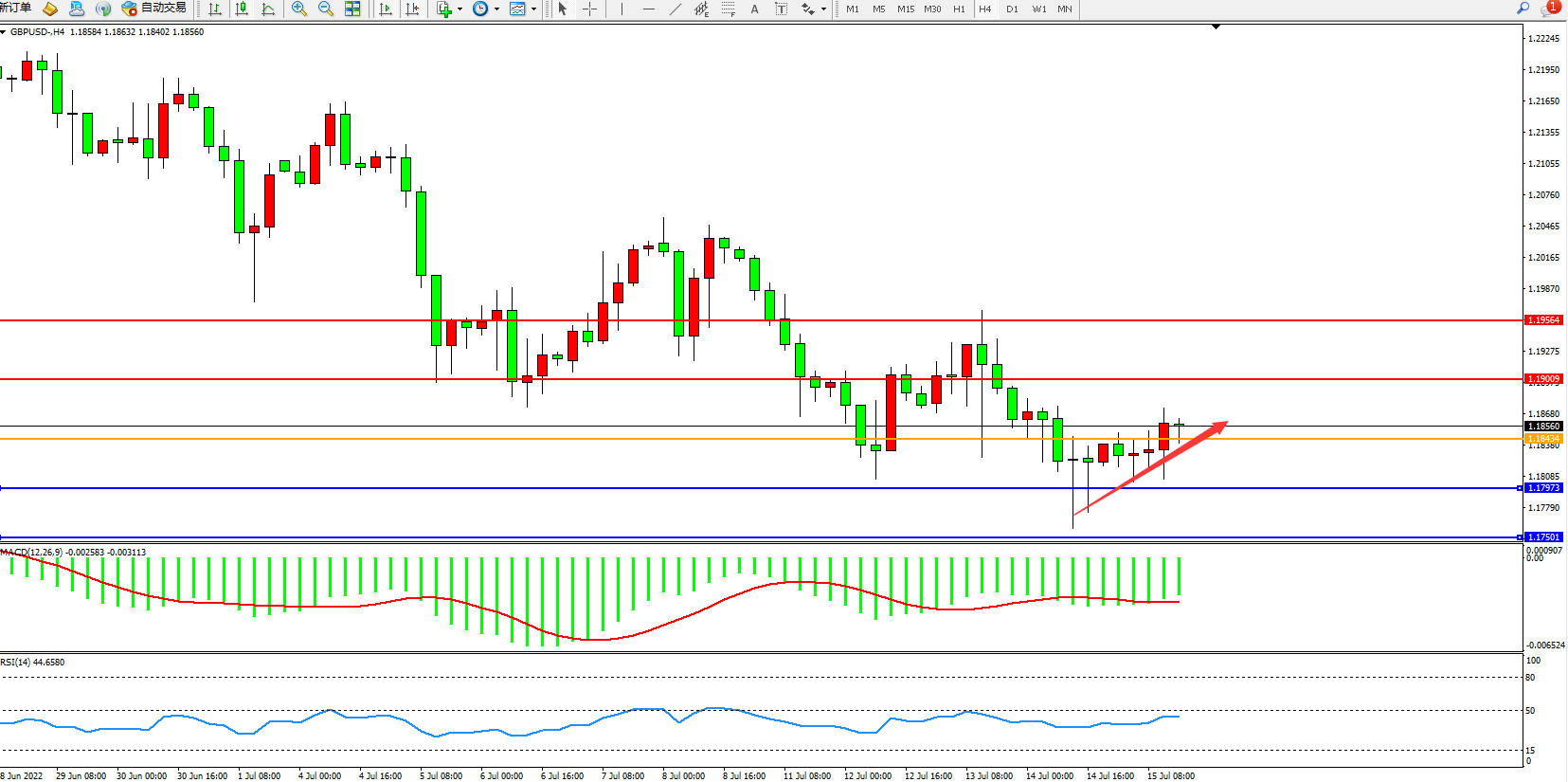 英镑美元GBPUSD ——4小时K线图显示: