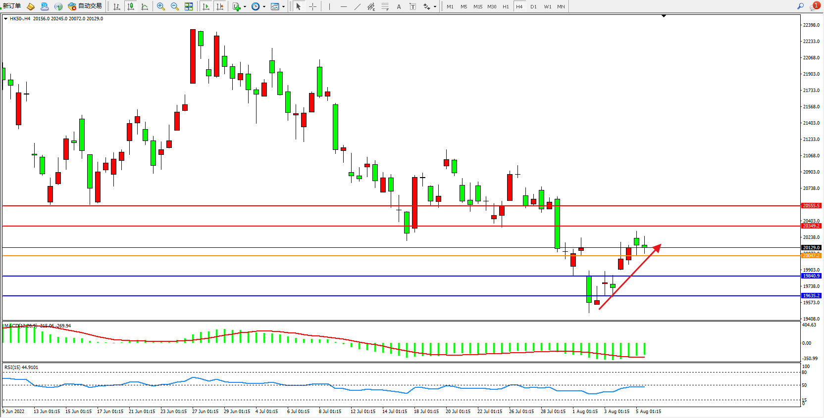恒指HK50 4小时图