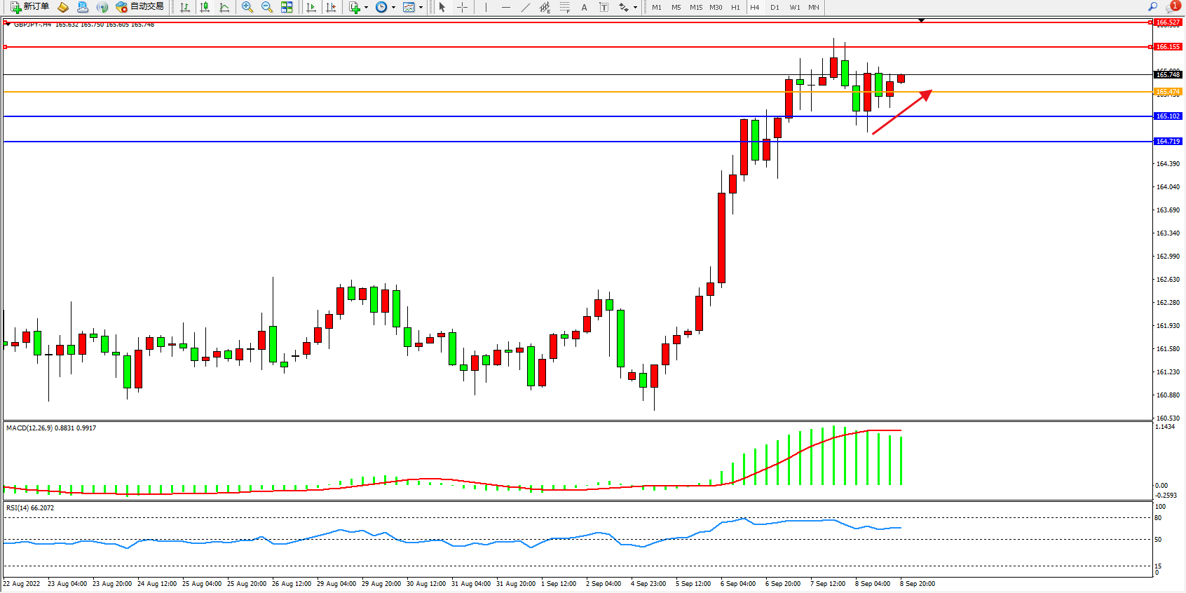 交易策略:165.474上方看涨,目标166.155、166.527